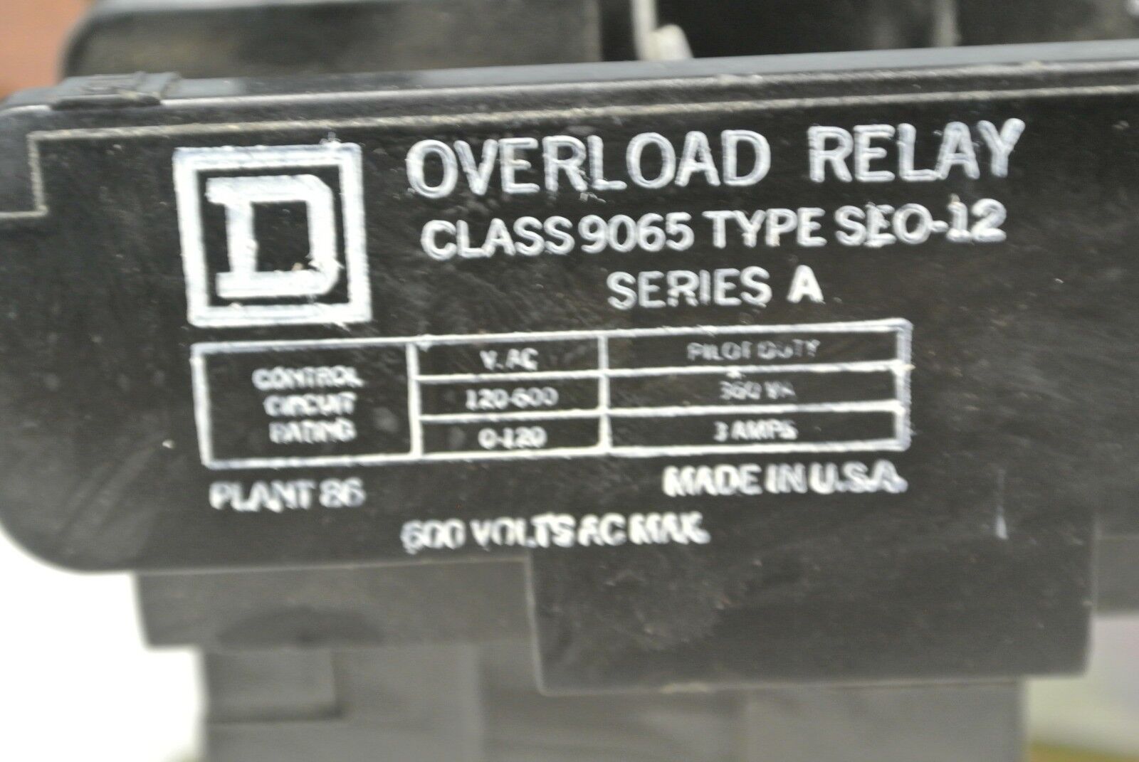 SQUARE D 9065 SEO-12 THERMAL OVERLOAD RELAY / 600VAC / 360VA / 0-120VAC / 3A