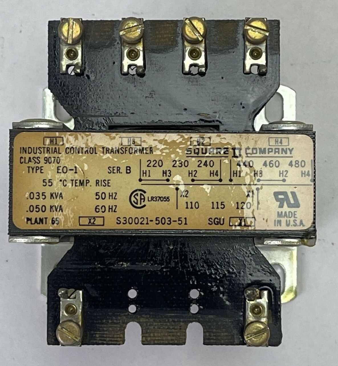 SQUARE D CLASS 9070 TYPE EO-1 SER B INDUSTRIAL CONTROL TRANSFORMER .050 KVA 60HZ
