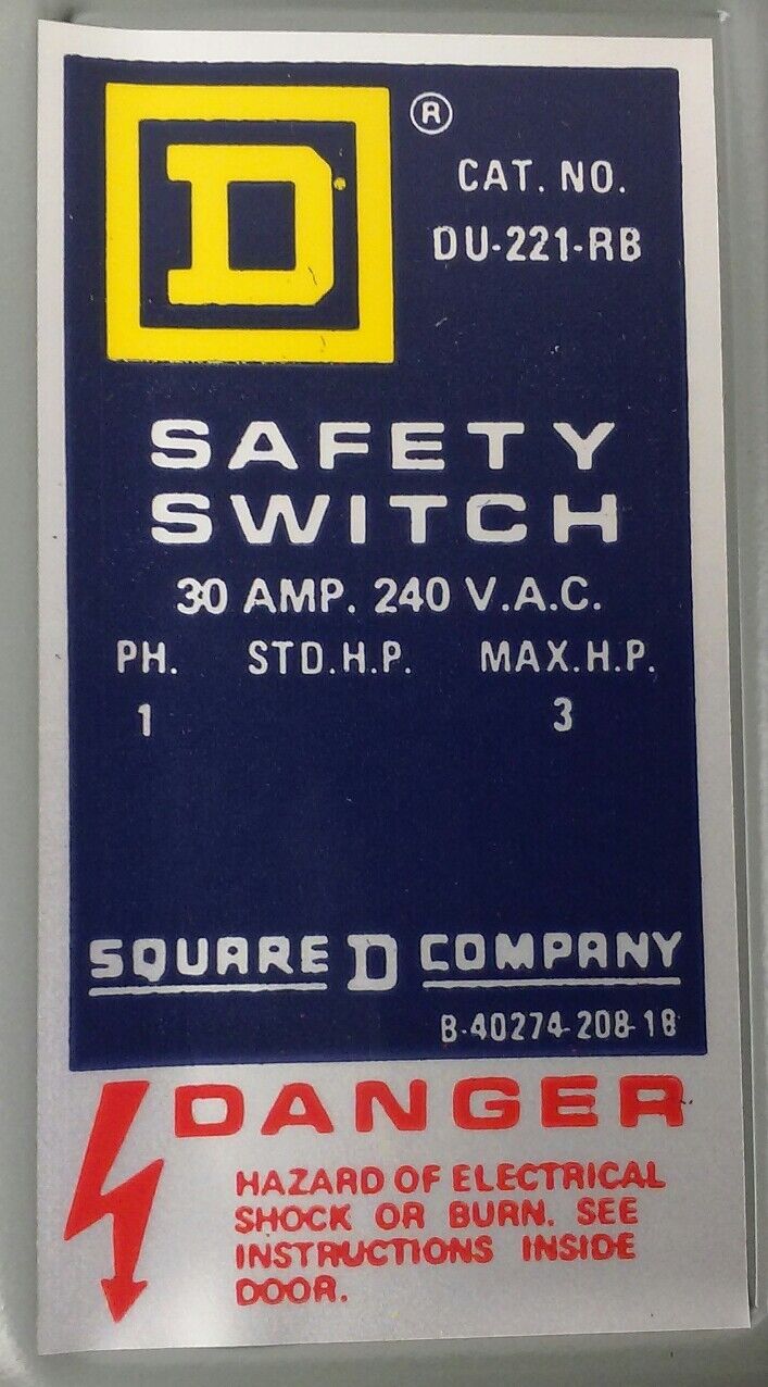 SQUARE D DU221RB SER.E1 SAFETY SWITCH 30A 240V 1PH 3HP TYPE 3R RAINPROOF