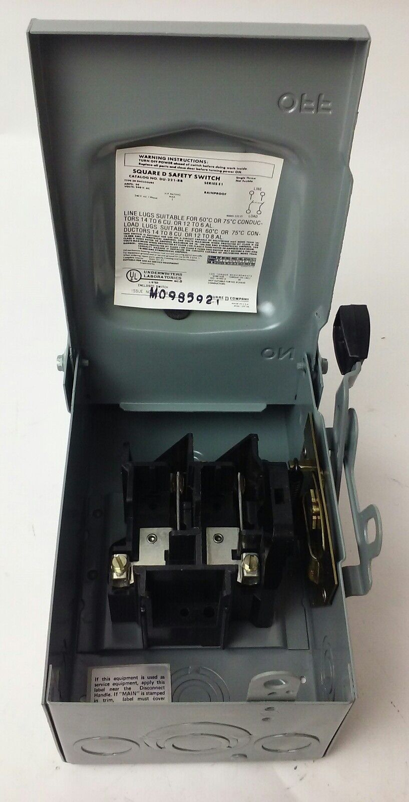 SQUARE D DU221RB SAFETY SWITCH, SERIES E1, NON FUSIBLE,