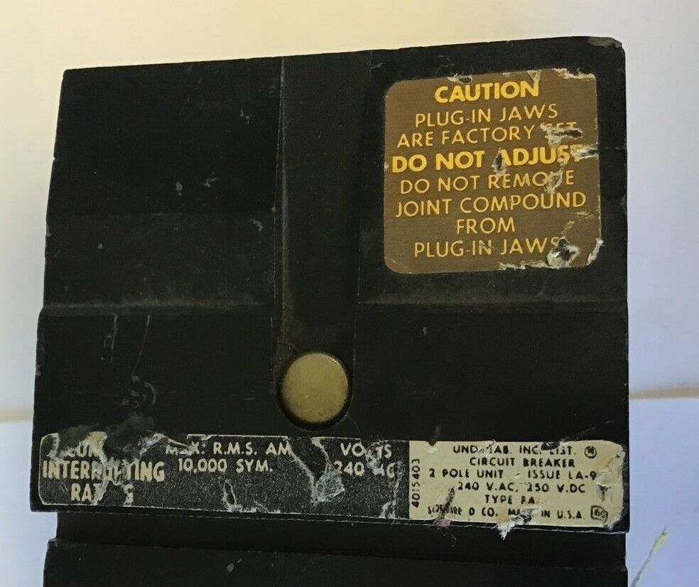 SQUARE D FA22020AB CIRCUIT BREAKER 20AMP 2POLE 240VAC/250VAC