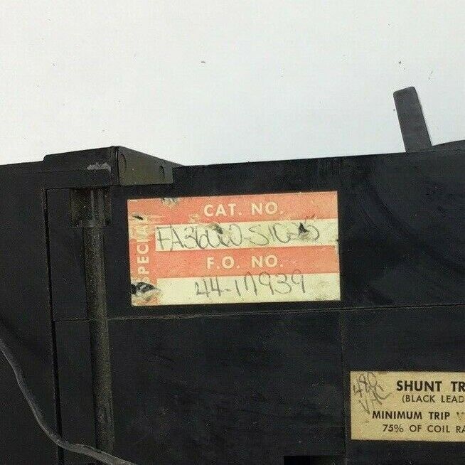 SQUARE D FA36060-S1025 CIRCUIT BREAKER 600VAC 250VDC 3POLE 60A W/SHUNT TRIP