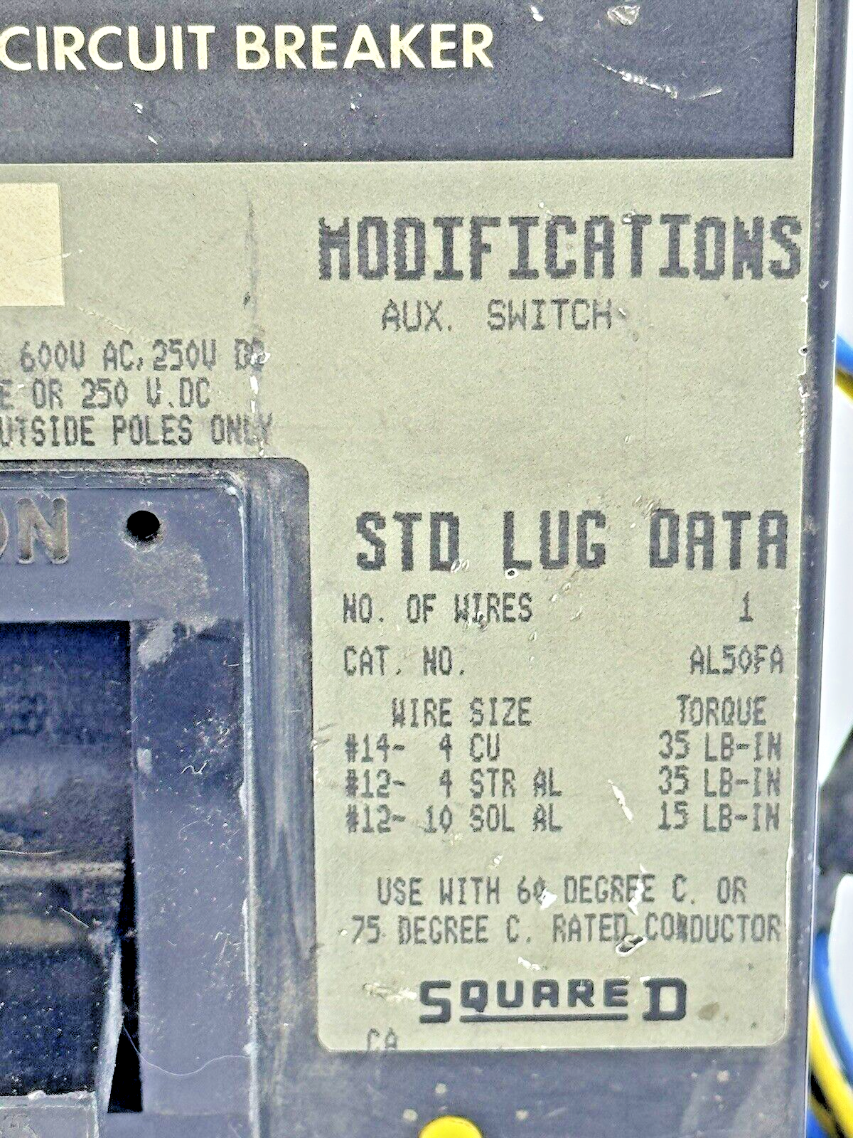 SQUARE D - FAL360151212 - CIRCUIT BREAKER W/ AUX SWITCH - 3 POLE/ 15 A/ 600 VAC