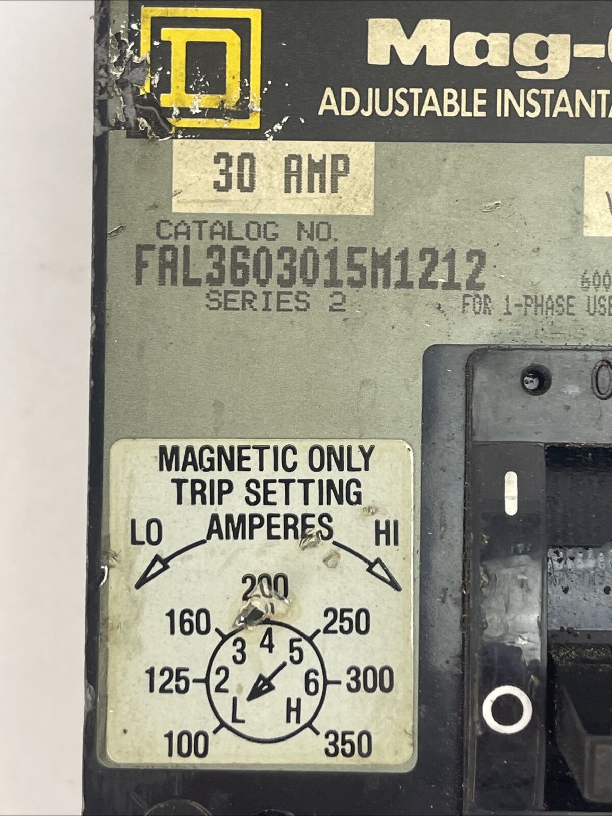 SQUARE D FAL3603015M1212 MAG-GARD ADJ INSTANTANEOUS TRIP CIRCUIT BREAKER 30A 600VAC MAGNETIC ONLY TRIP SETTING 100-350A