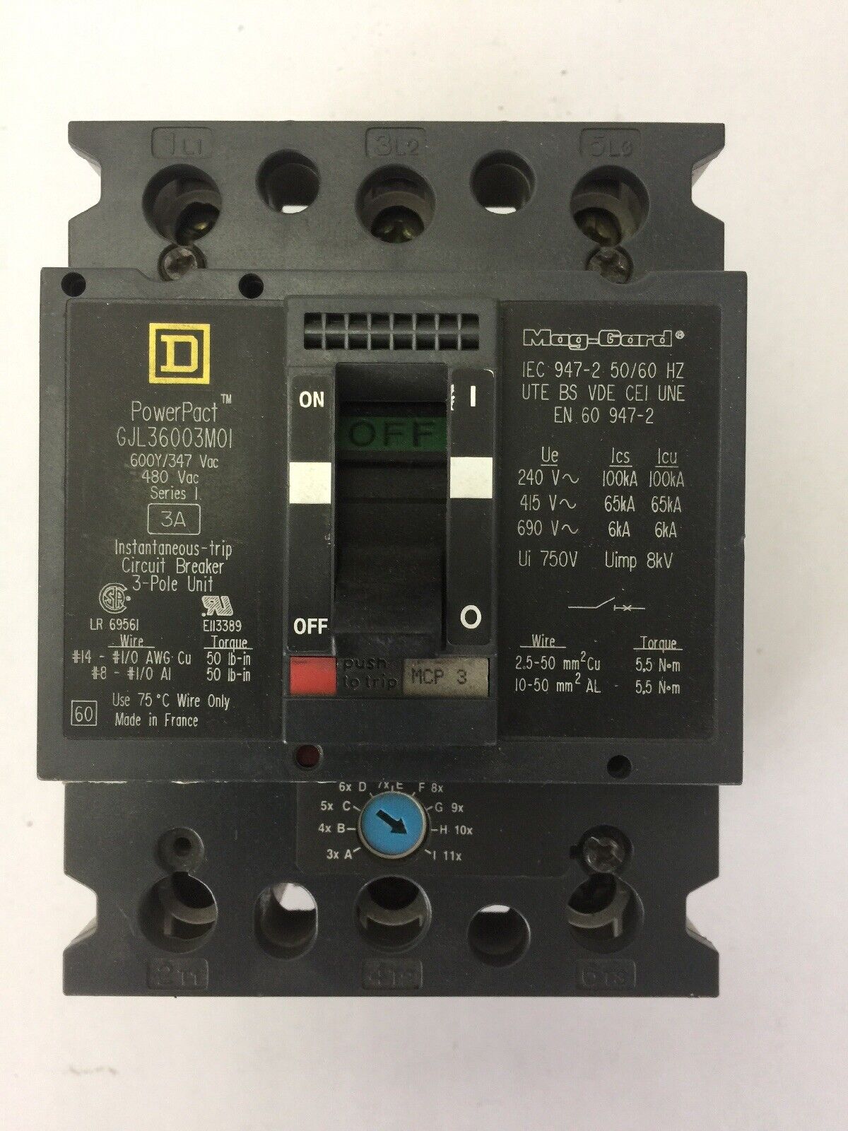 SQUARE D GJL36003M01 INSTANTANEOUS TRIP CIRCUIT BREAKER 3A 600Y/347VAC 480VAC 3P
