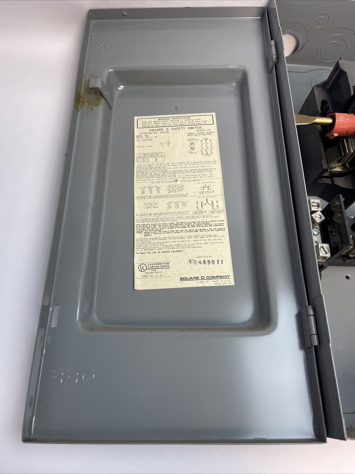 SQUARE D H323N SAFETY SWITCH 240VAC 100A FUSIBLE 30HP SER E2