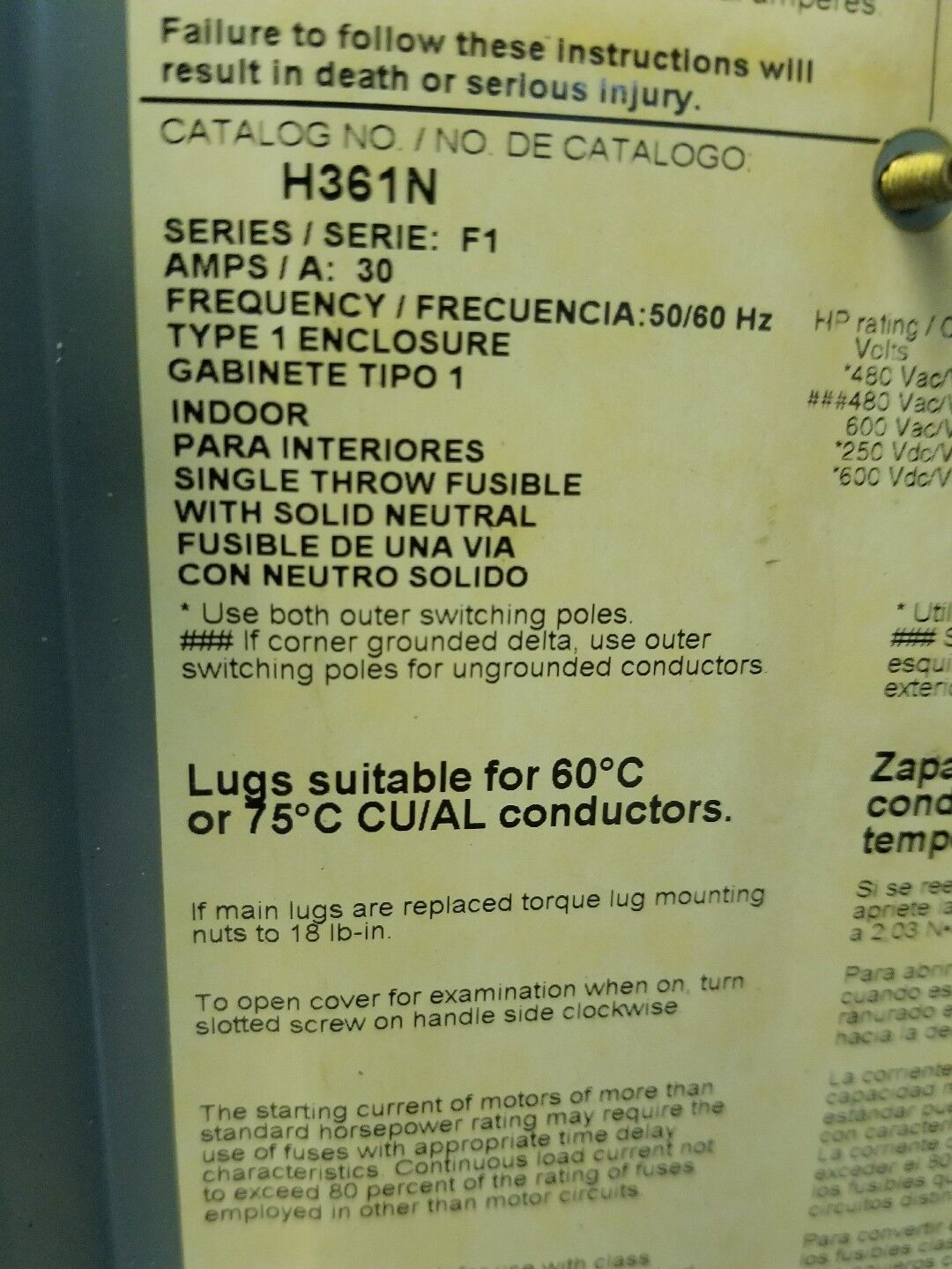 SQUARE D H361 N 30A 600V 3PH FUSED