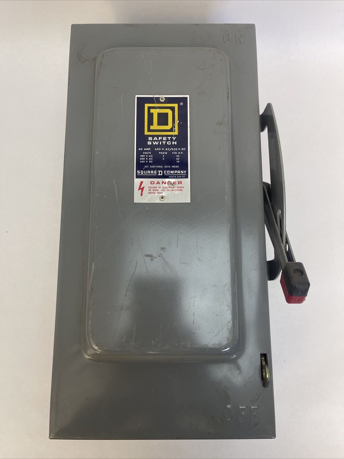 SQUARE D HU-362 NON-FUSIBLE SAFETY SWITCH 600VAC/DC 60AMP 3POLE 60HP SERIES D2