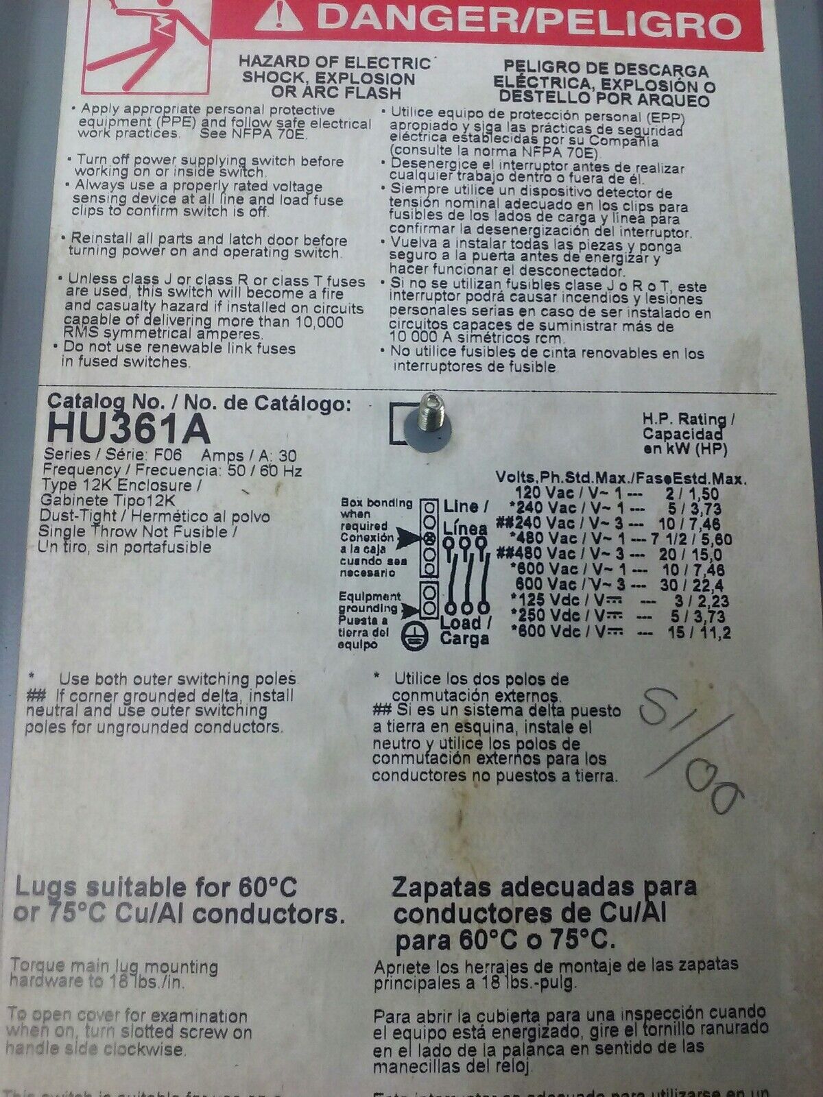 SQUARE D HU361A SERIES F06 HEAVY DUTY DISCONNECT SWITCH