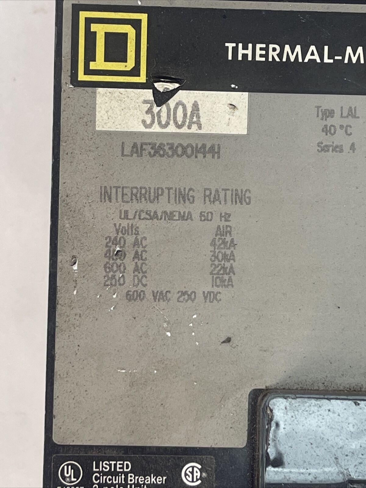 SQUARE D LAF363001441 CIRCUIT BREAKER 300AMP 600VAC 250VDC 3POLE LA11042 LA11212