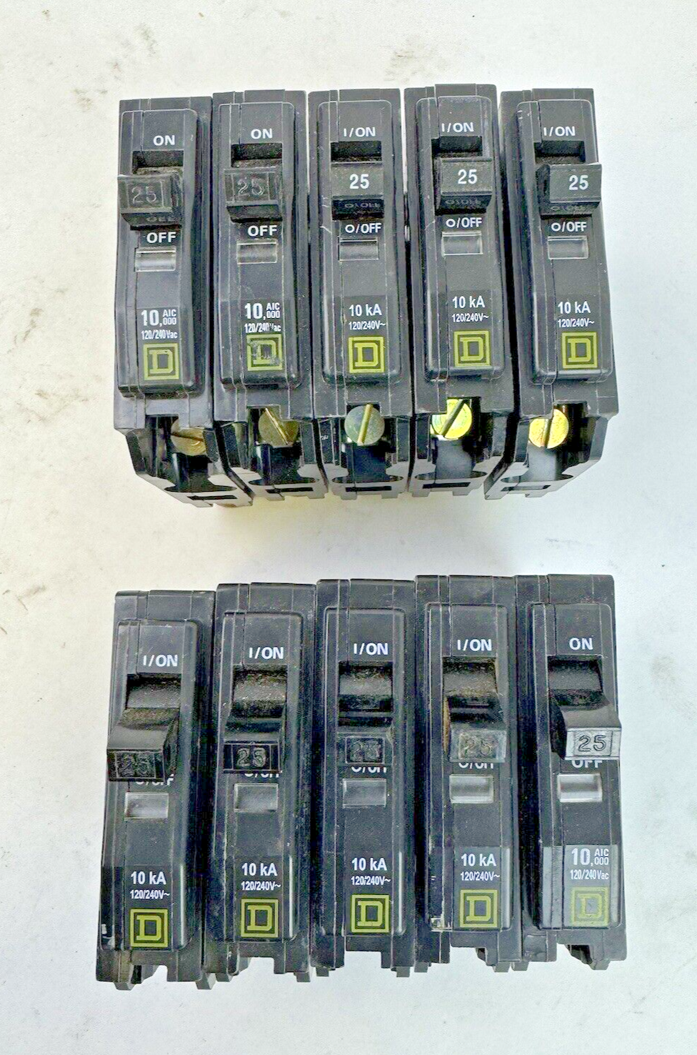 SQUARE D **LOT OF 10** QO125 - CIRCUIT BREAKERS - 1 POLE/ 25 A/ 240 VAC