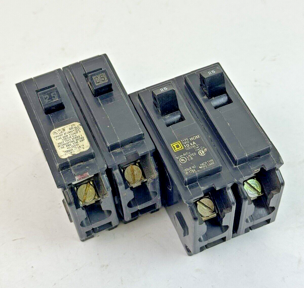 SQUARE D **LOT OF 2** HOM225 - CIRCUIT BREAKERS - 2 POLE/ 25 A/ 240 VAC