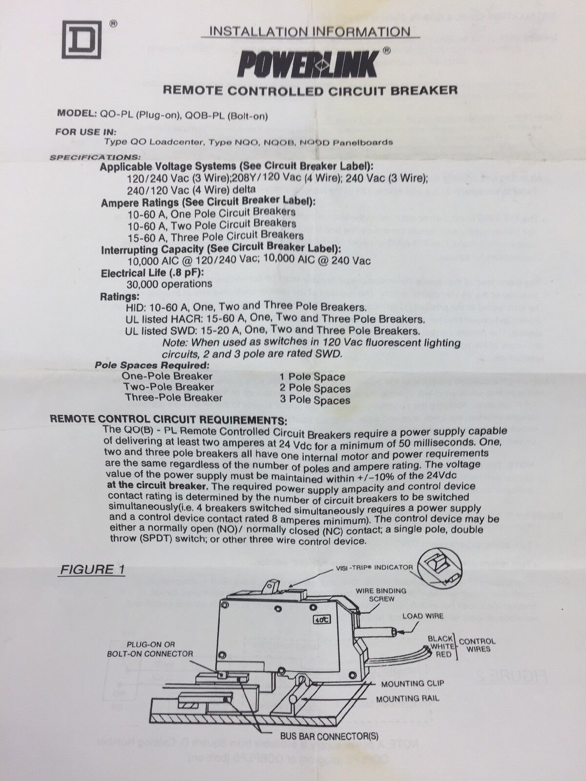 SQUARE D QOB120PL 20A 1 POLE 120/240V 50/60HZ 10,000 AIR/A NOM CIRCUIT BREAKER