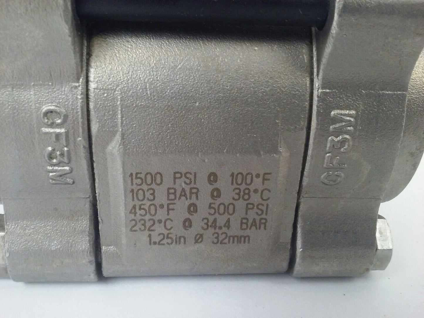 1500 PSI @ 100, 103F BAR @ 38C, 450F @ 500PSI, 232c @ 34.4BAR, 1.25in-32MM