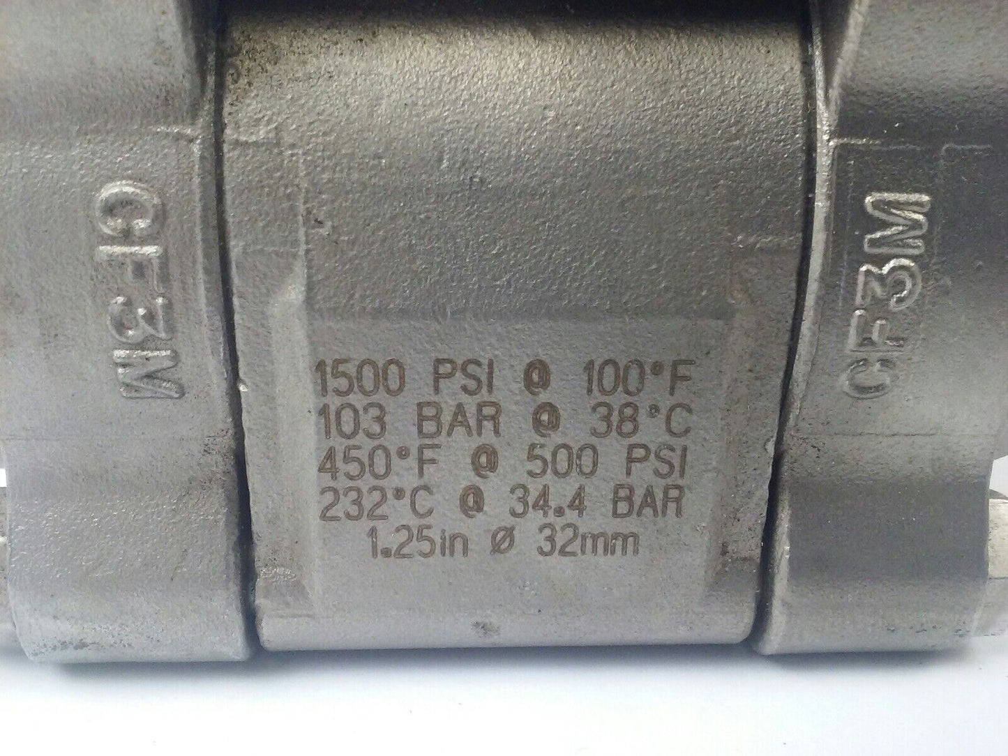 SWAGELOCK SS-67PF24 BALL VALVE 1500 PSI@100F, 103 BAR@38C, 450F@ 500PSI, 1.25in