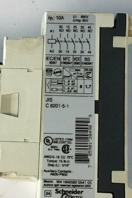 TELEMECANIQUE CAD50 CONTACTOR 10A 690V 6KV W/ LADT2 TIME DELAY 0.1-30S