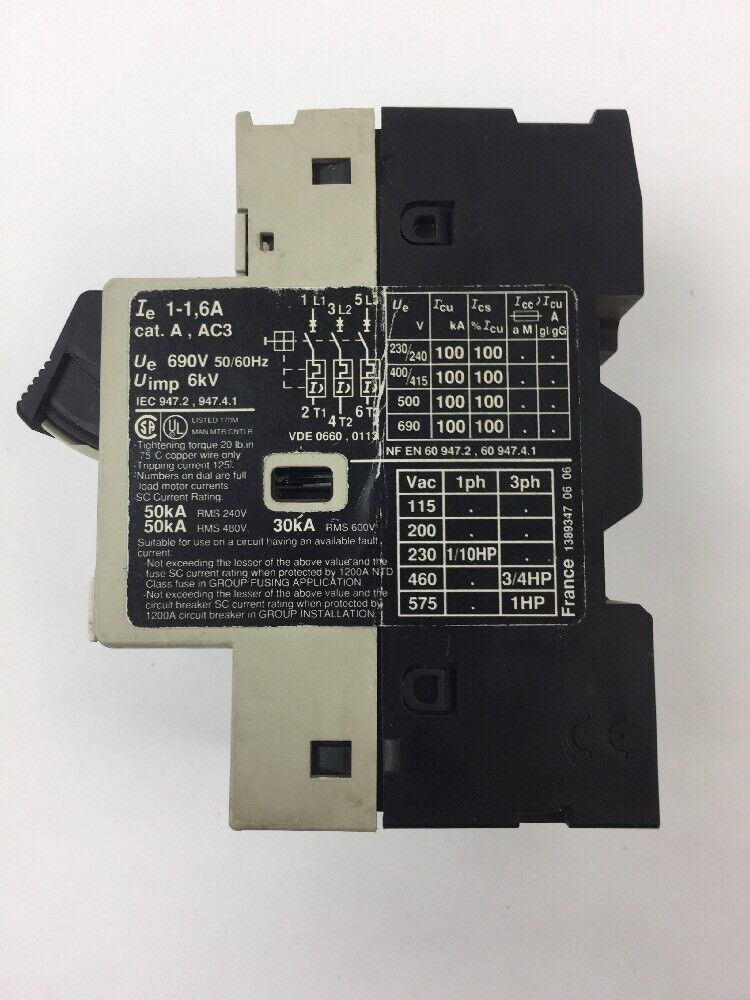 TELEMECANIQUE GV2-MO6 MOTOR CIRCUIT BREAKER 1-1.6A