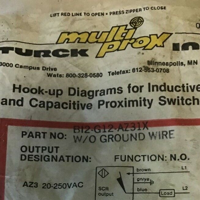 TURCK B12-G12-AZ31X PROXIMITY SENSOR W/O GROUND WIRE 35-250VAC