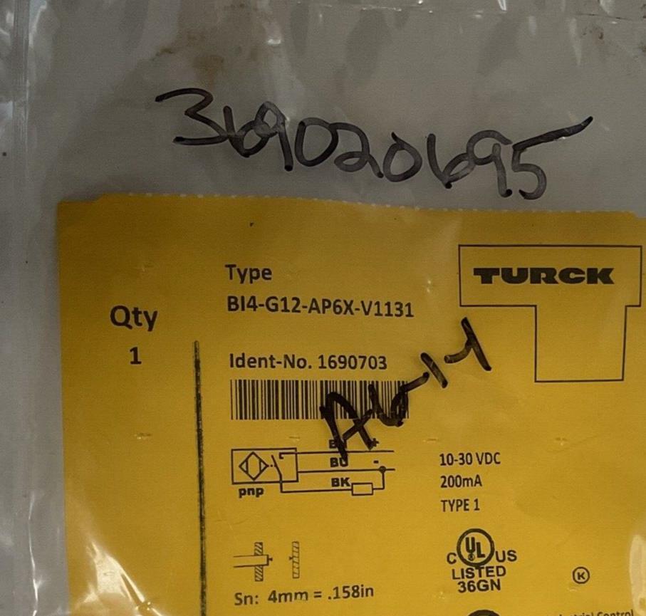 TURCK BI4-G12-AP6X-V1131 INDUCTIVE PROXIMITY SENSOR 10-30VDC 200MA 4MM