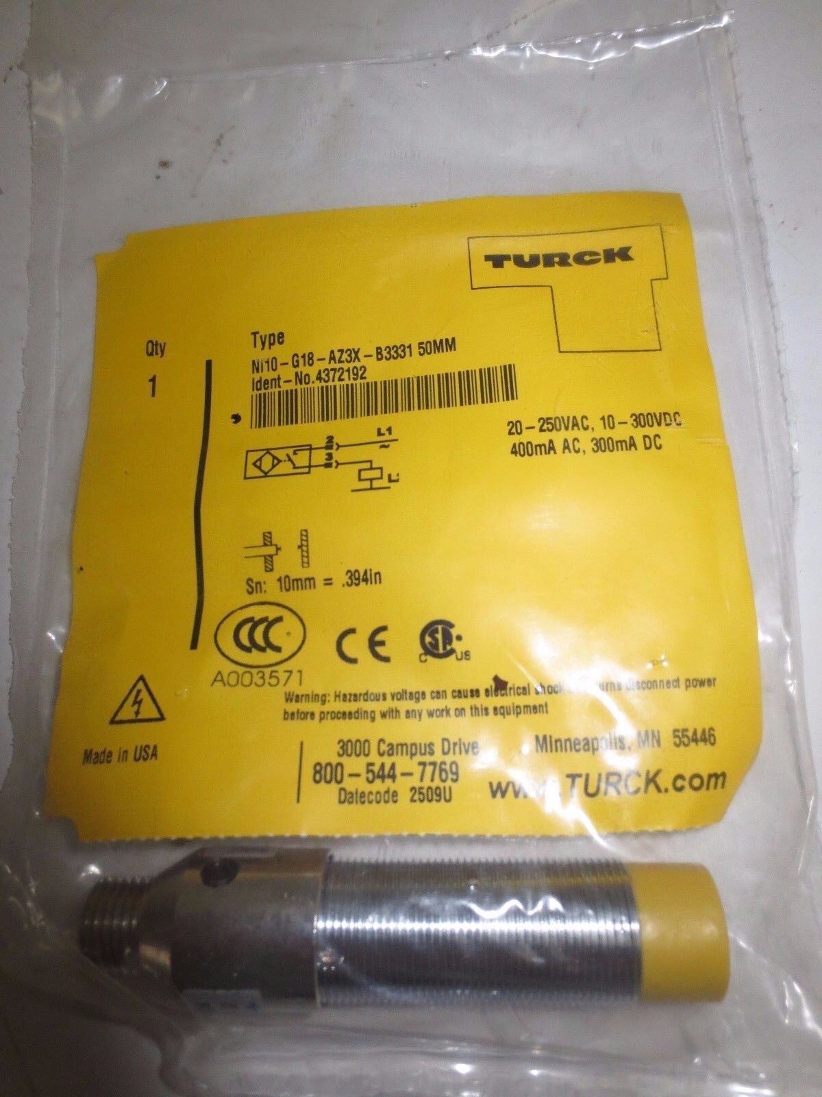 TURCK NI10-G18-AZ3K-B3331 SENSOR - 20-250VAC,10-300VDC 400mA AC - NEW SURPLUS