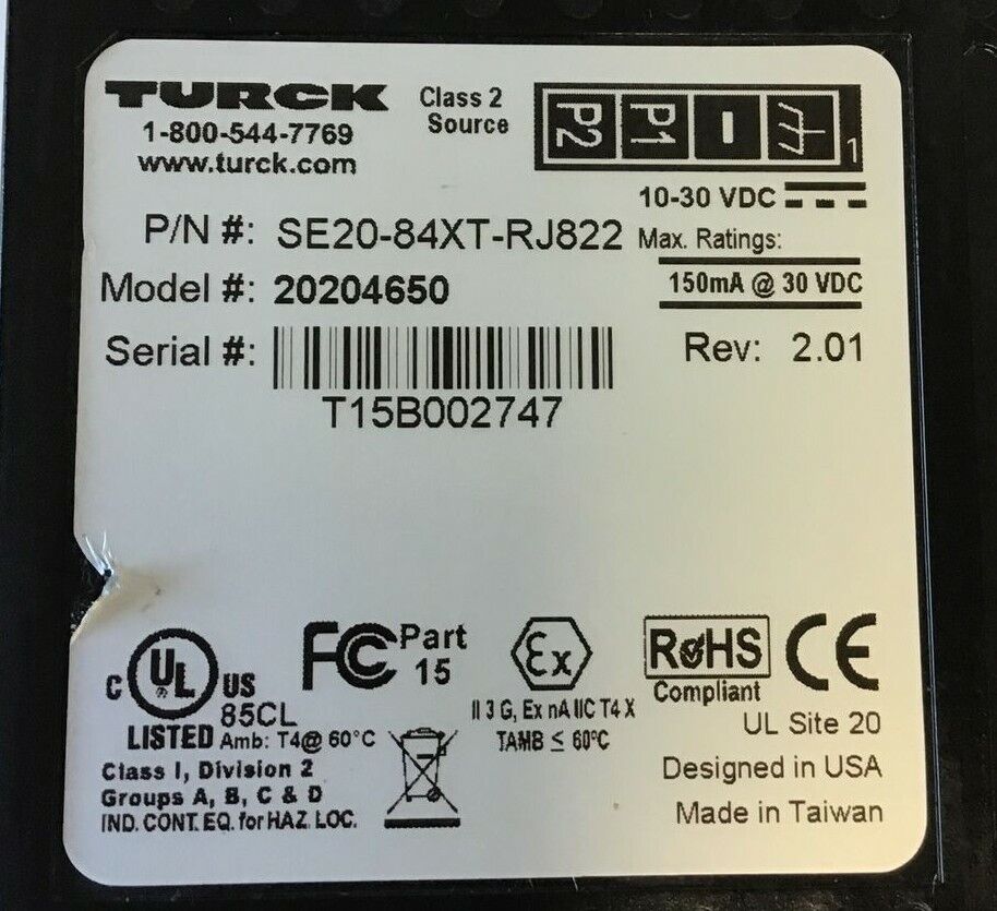 TURCK SE20-84XT-RJ822 8 PORT INDUSTRIAL ETHERNET SWITCH 10-30VDC CLASS2