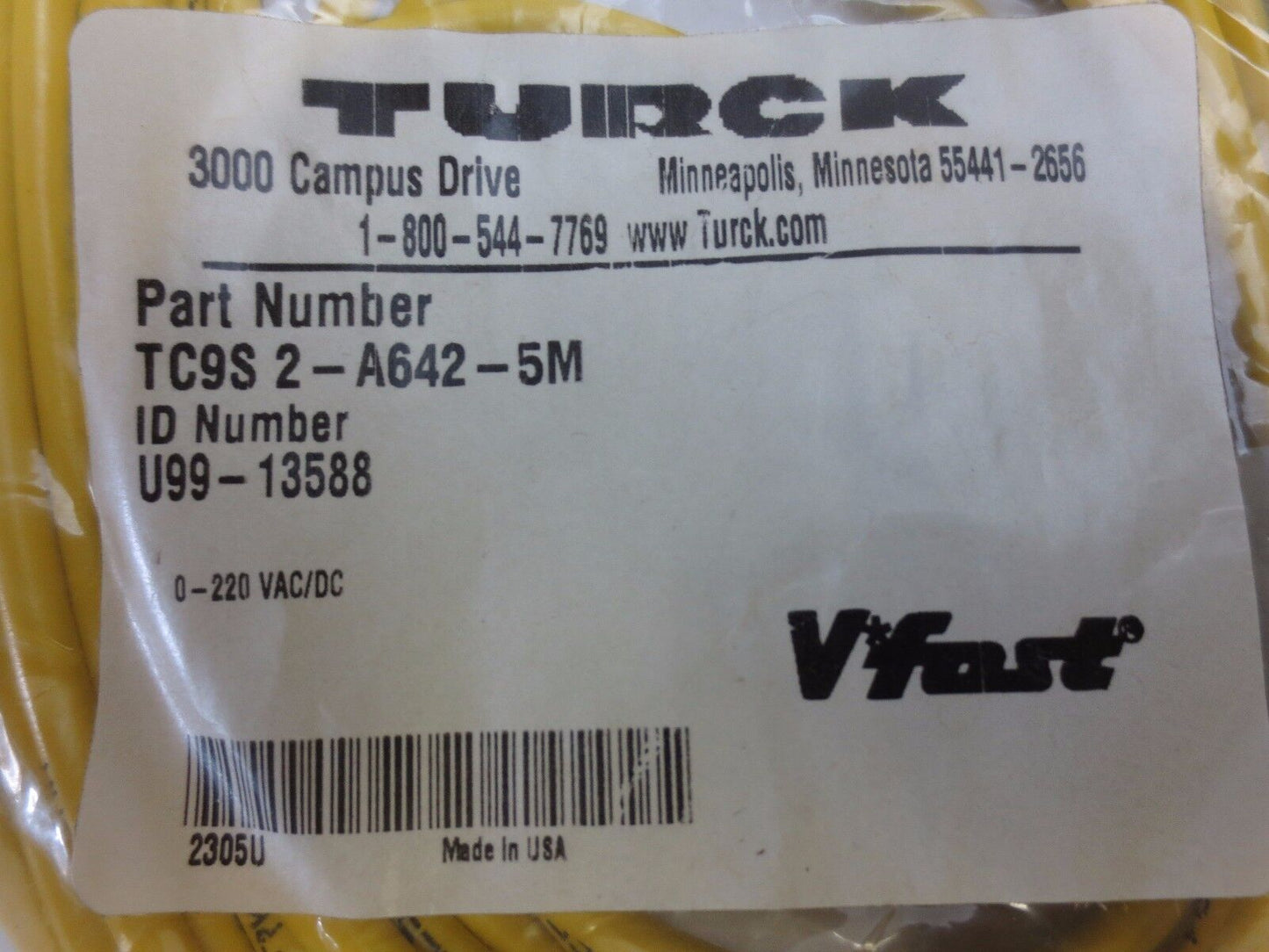 TURCK V-FAST TC9S 2-A642-5M / U99-13588 CORDSET - 0-220VAC/DC - NEW SURPLUS