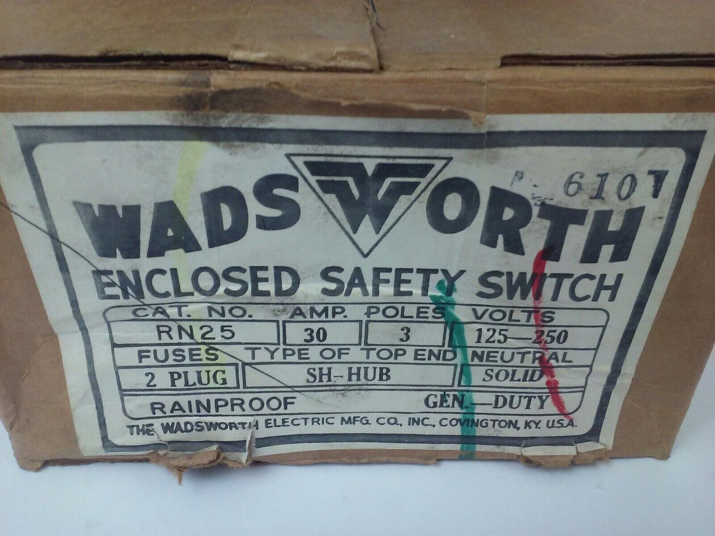 WADSWORTH RN25 SERIES SH SAFETY SWITCH 3P, 30A, 125-250V, 2 PLUG