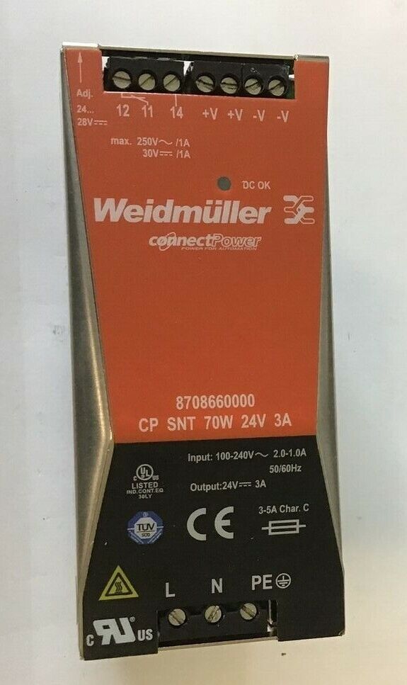 WEIDMULLER 8708660000 CONNECT POWER SUPPLY UNIT 100-240VAC 30VDC 70W 3A 2.0-1.0A