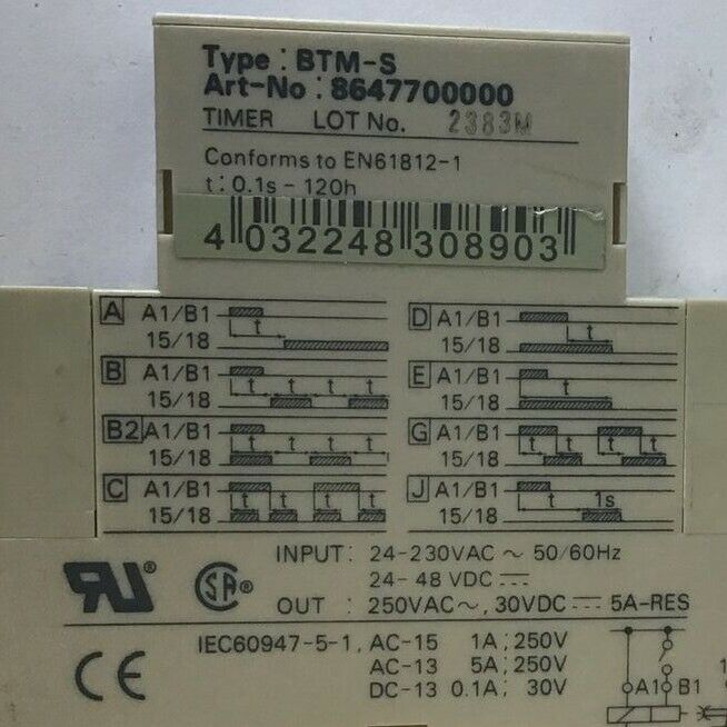 WEIDMULLER BTM-S RELAY TIMER250VAC 30VDC 5A