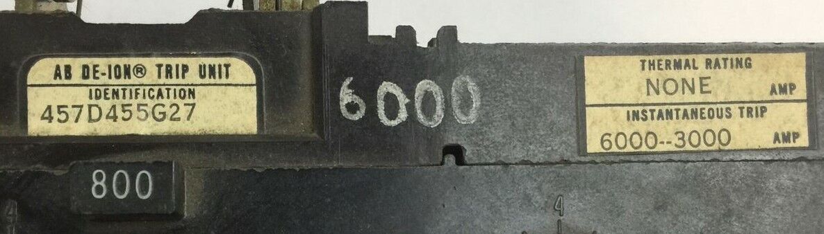 WESTINGHOUSE 457D455G27 AB DE-ION TRIP UNIT 800AMP 3POLE INSTANTANEOUS TRIP 6000-3000AMP