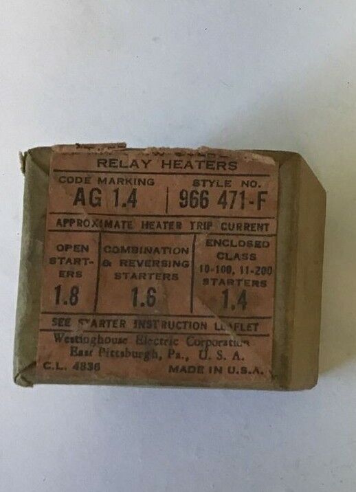 WESTINGHOUSE 966471-F RELAY HEATERS AG 1.4 ***LOTOF2***