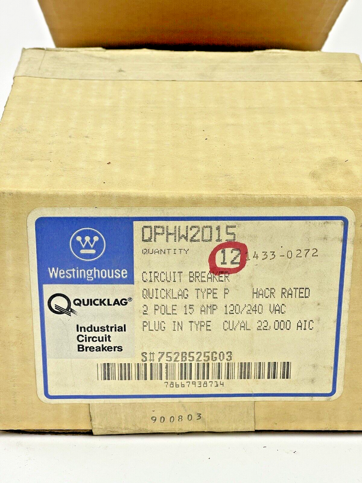 WESTINGHOUSE **BOX OF 12** - QPHW2015 - 15A/2 POLE/240 VAC/QUICKLAG/TYPE P - NEW