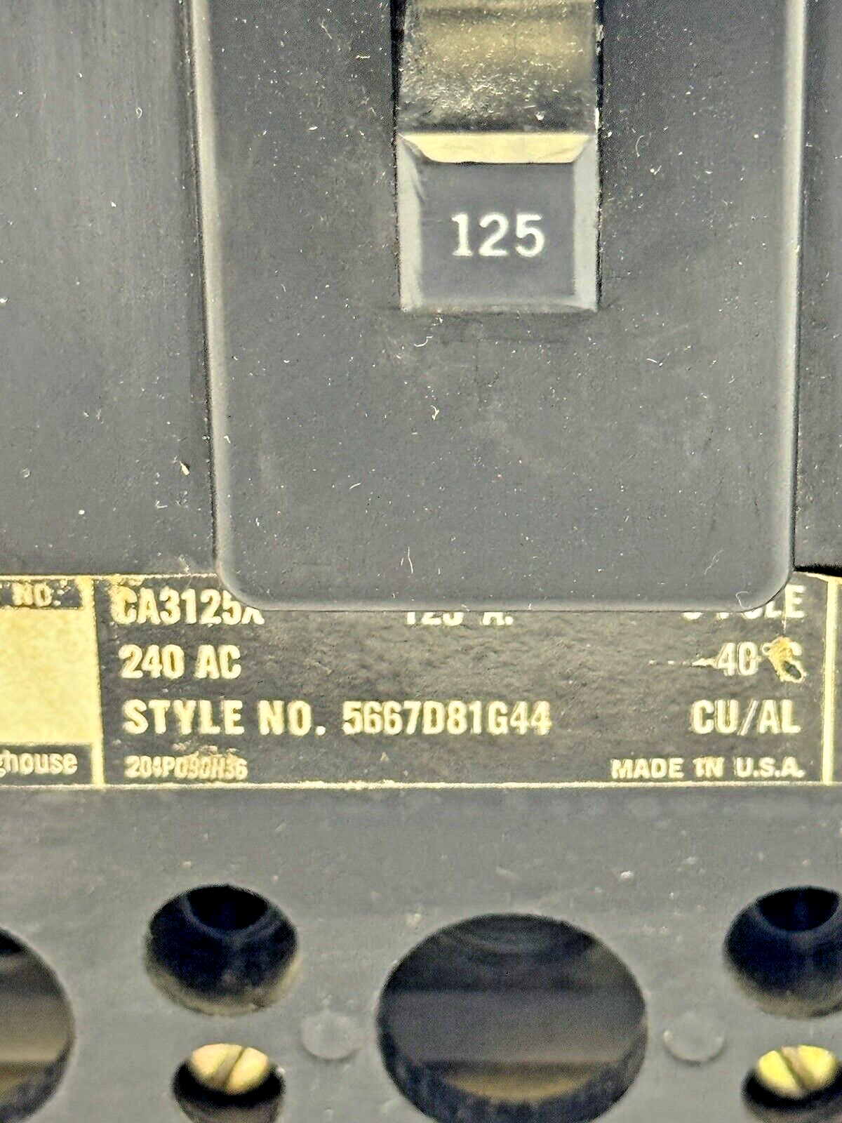 WESTINGHOUSE - CA3125X - CIRCUIT BREAKER - 3 POLE/ 125 A/ 240 VAC