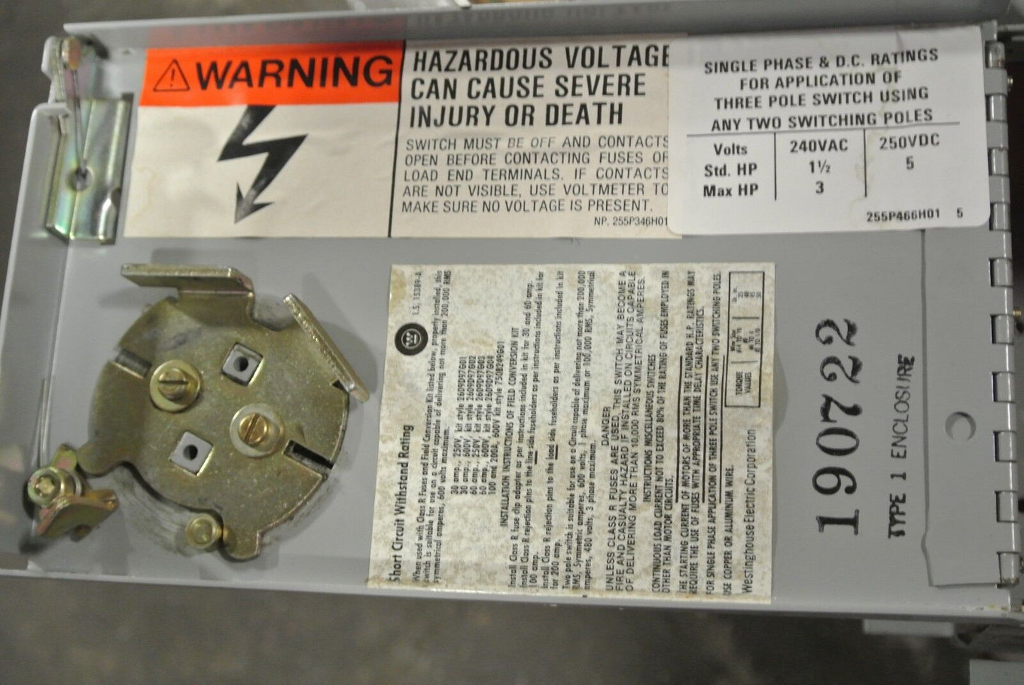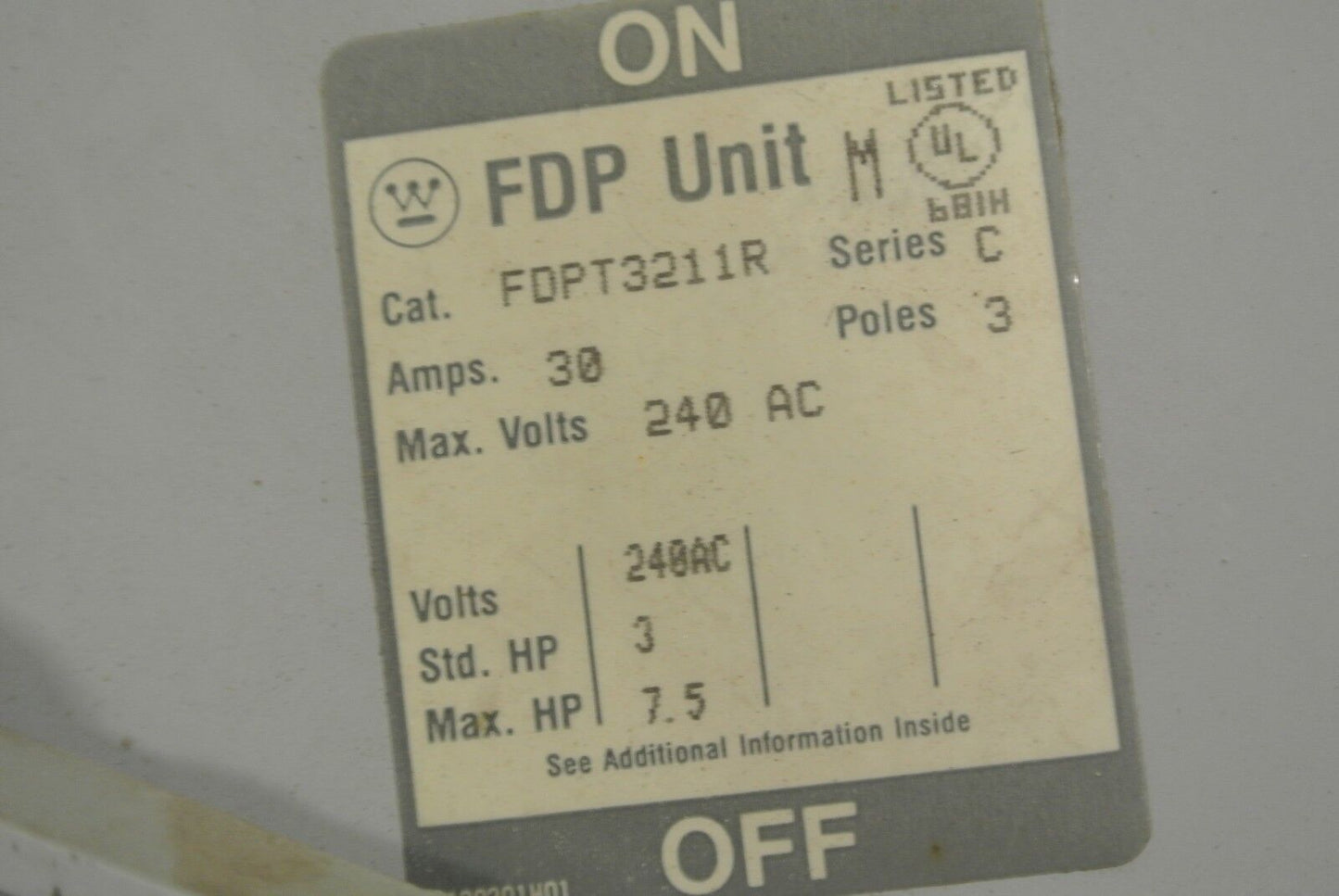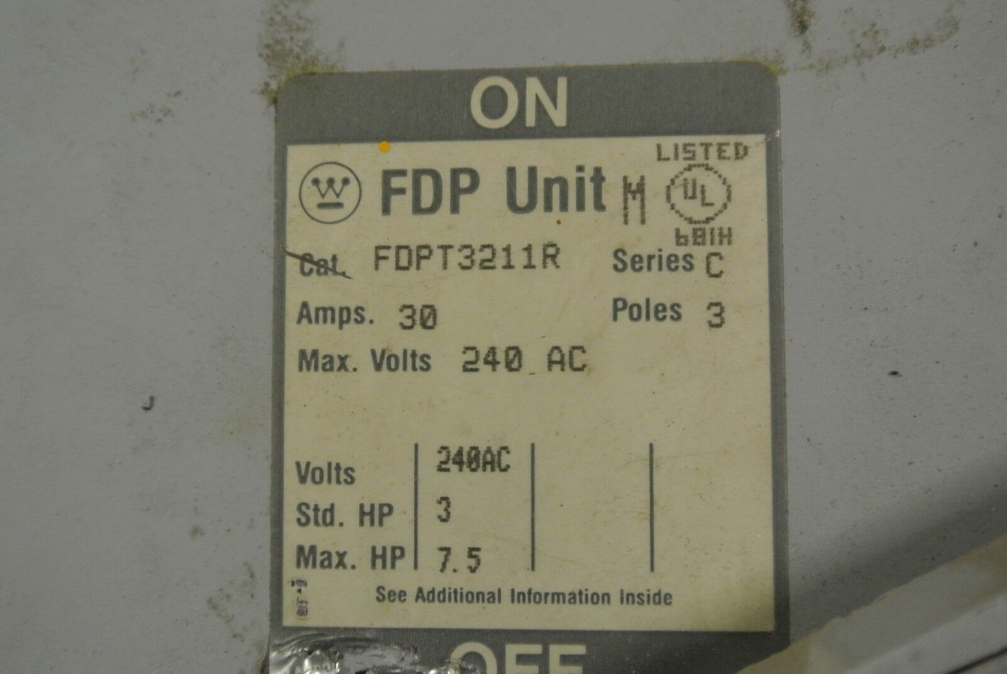 WESTINGHOUSE FDPT3211R - TWIN FUSIBLE PANELBOARD SWITCH 240VAC, 30A, 3-POLE EACH