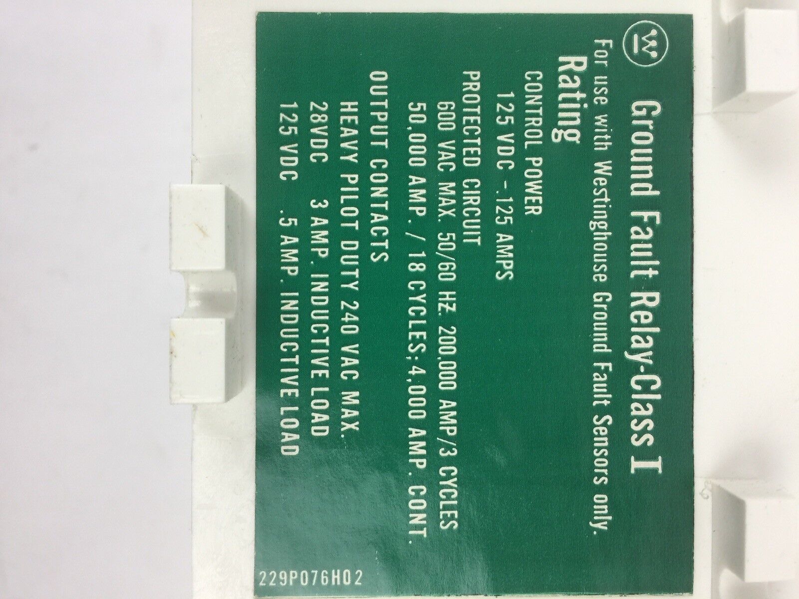 WESTINGHOUSE GFR60ED GROUND FAULT RELAY ELEC RESET W/O INTLK 255P156H08D