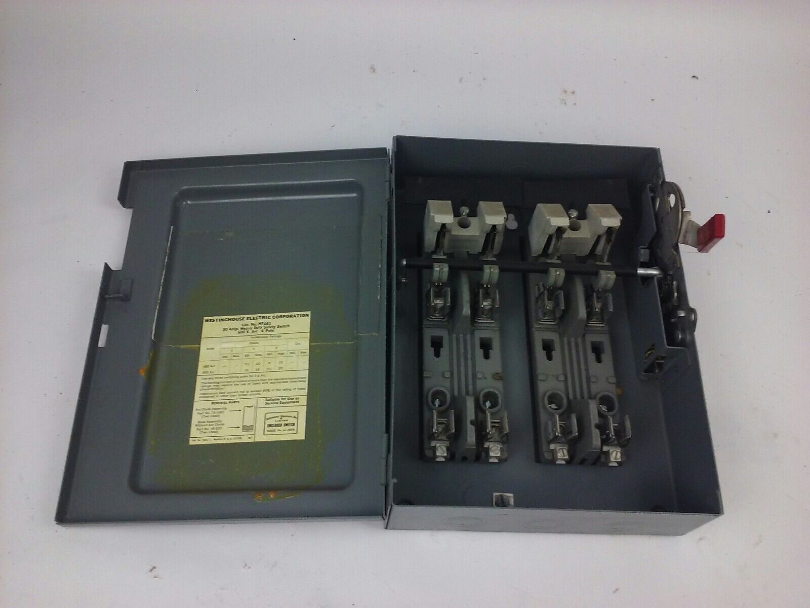 WESTINGHOUSE HF461 SAFETY SWITCH, 30A, 600V, 4P FUSIBLE, 25 H.P., NEW