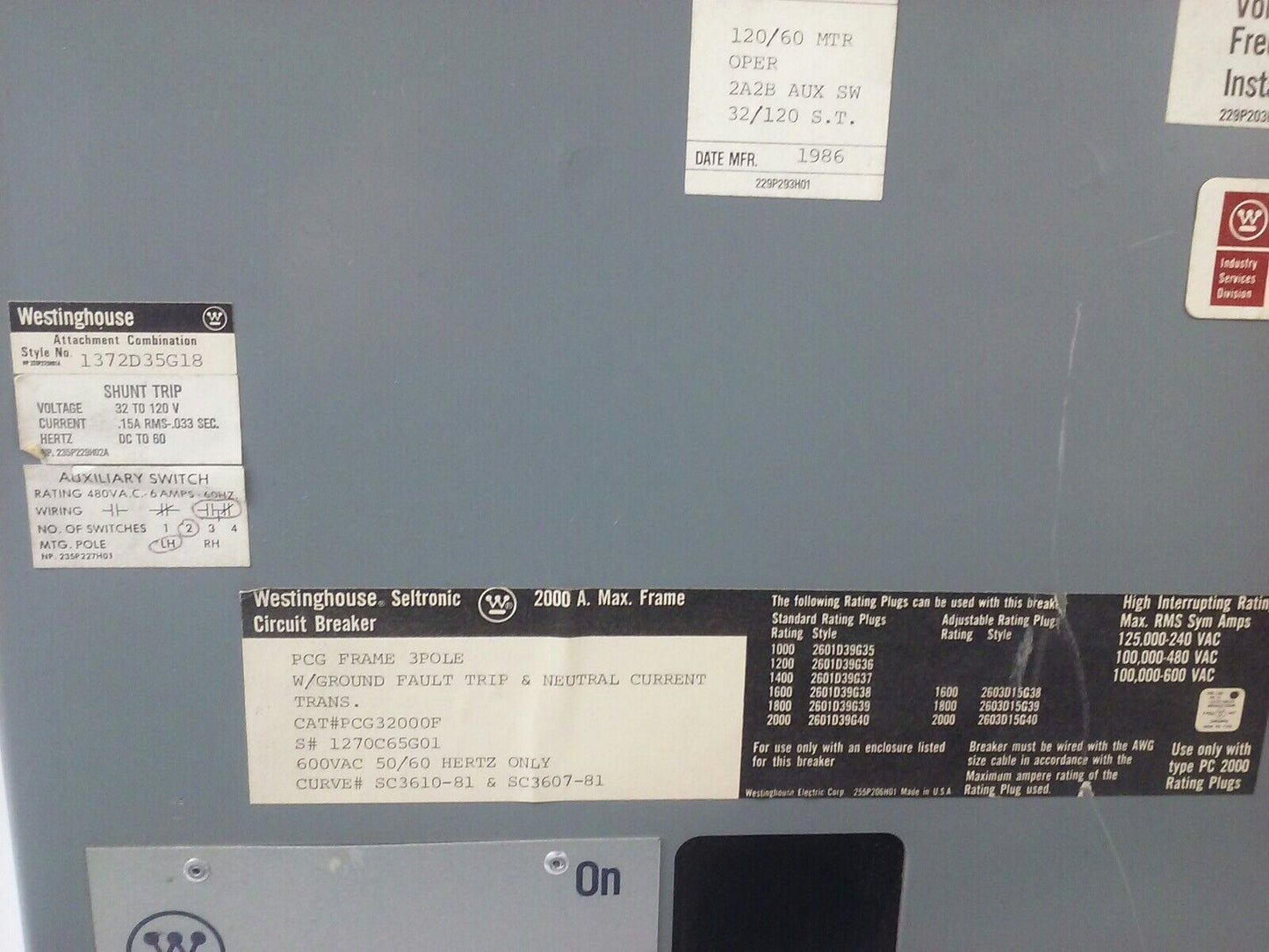WESTINGHOUSE PC FRAME PCG32000F 3POLE 600V 50/60HZ 1270C65G01