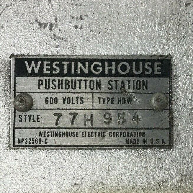 WESTINGHOUSE TYPE HDW PUSHBUTTON STATION 77H954 600VOLTS